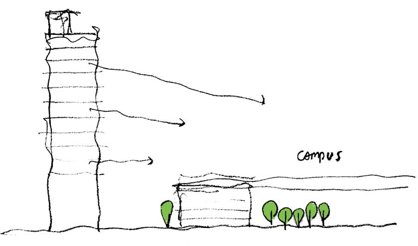 認為建築量體應該與環境融合,融於都市肌理的綠風景建築